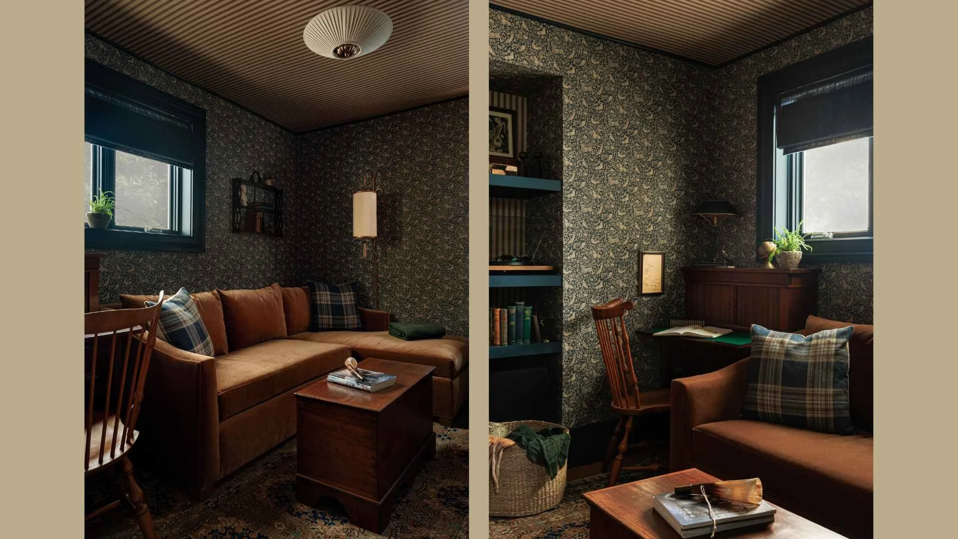 The snug became one of the most magical parts of this project. If you're unfamiliar, a snug is essentially a cocooned retreat—small, moody, and meant for reading, listening to music, or having a nightcap. It's intentionally not a room for entertaining.